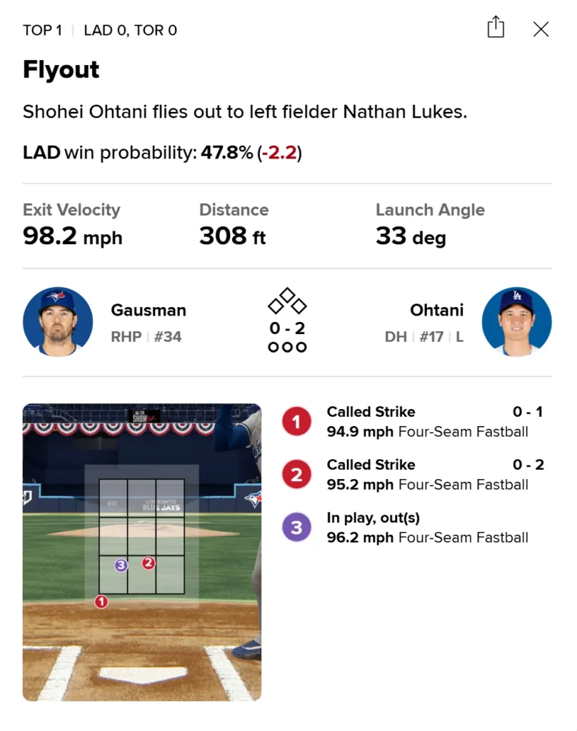 速球をゾーンに2球続けてビシッと投げ込むの最高だ。序盤で大谷のタイミングを狂わせろ。