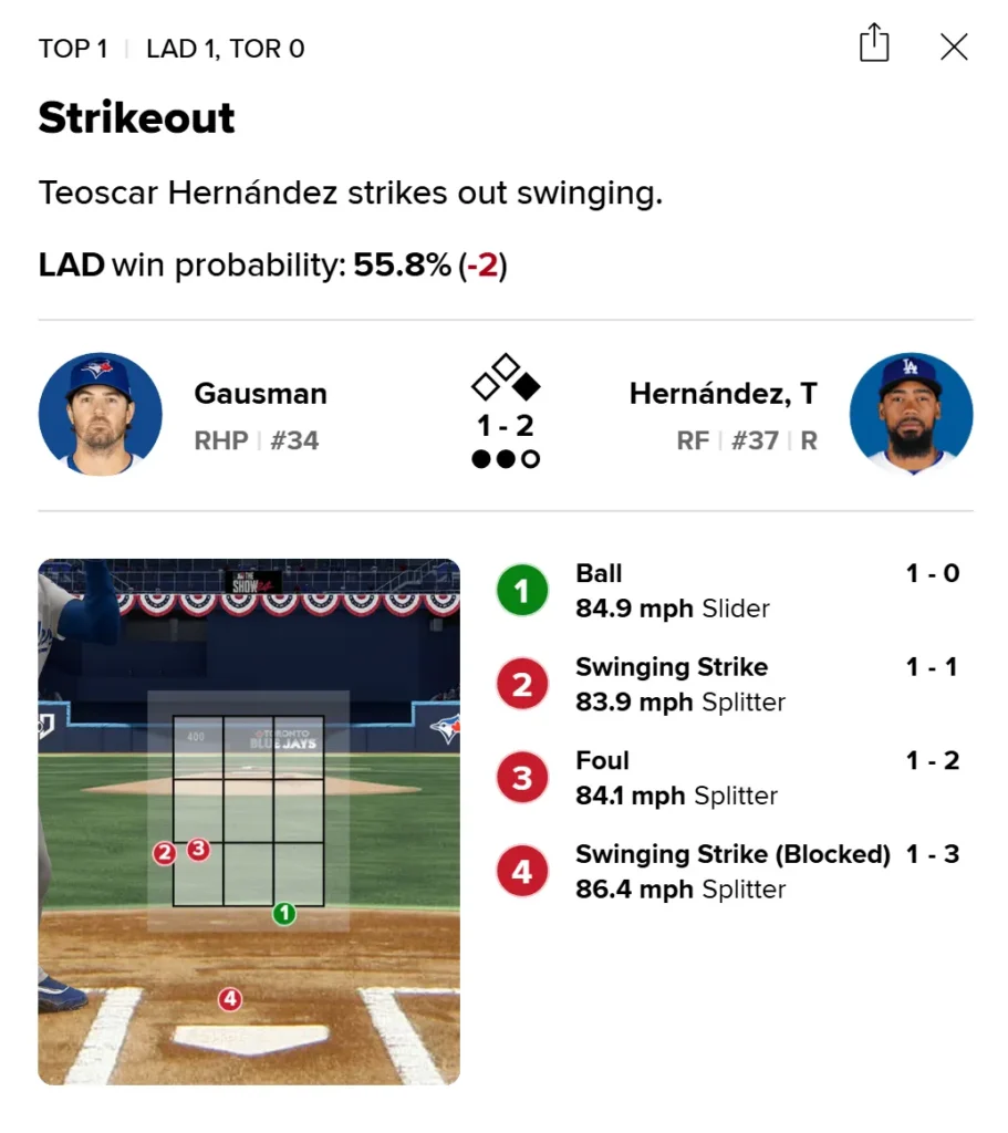 普段はテオスカー・ヘルナンデスのこと好きなんだけど、今は三振してくれるとちょっと気分がいい。